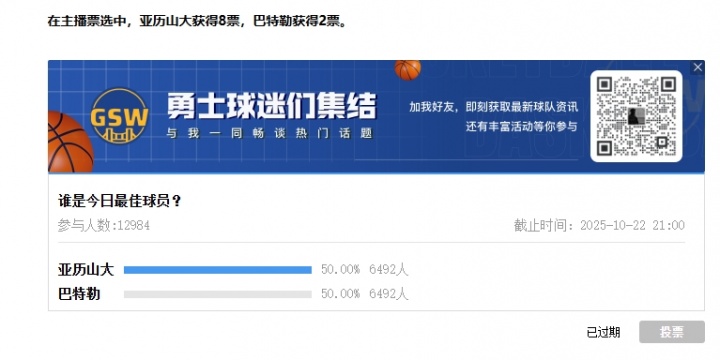 成果显现,亚历山大依靠主播投票上风,当选当天最好!(吧友票数打成平手)