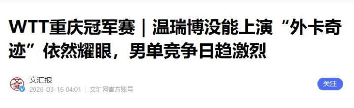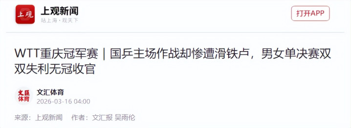 2026年最令东谈主惟恐的一站比赛终于收官,重庆冠军赛国乒主场作战,尽然落得个颗粒无收!