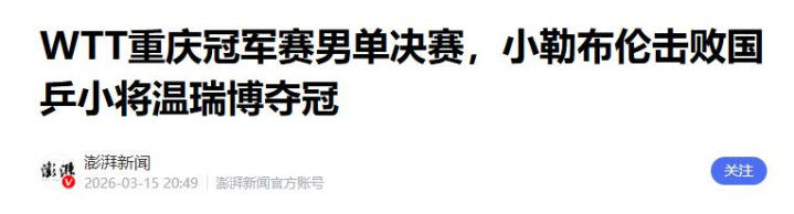 小勒布伦是出了名的快攻选手,他球风凌厉、反手基础底细很塌实,一上来就打得温瑞博有些回击不住。
